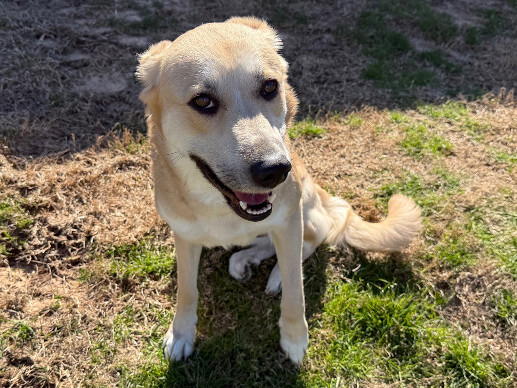 Amy is thought to be about 14 months old and weighs about 65 lbs. This Golden/Lab mix will make a faithful, fun, and devoted companion. She has the biggest heart and the sweetest disposition! Check out Amy's video!