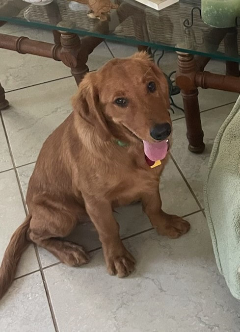 Chester is another pup that was turned into our rescue by a couple in MS who dabbled in backyard breeding. He is about 6 months old and is a beautiful red purebred Golden Retriever. He is a shy fellow and has done well being fostered together with Sunny. Therefore, the two dogs are to be adopted as a bonded pair.