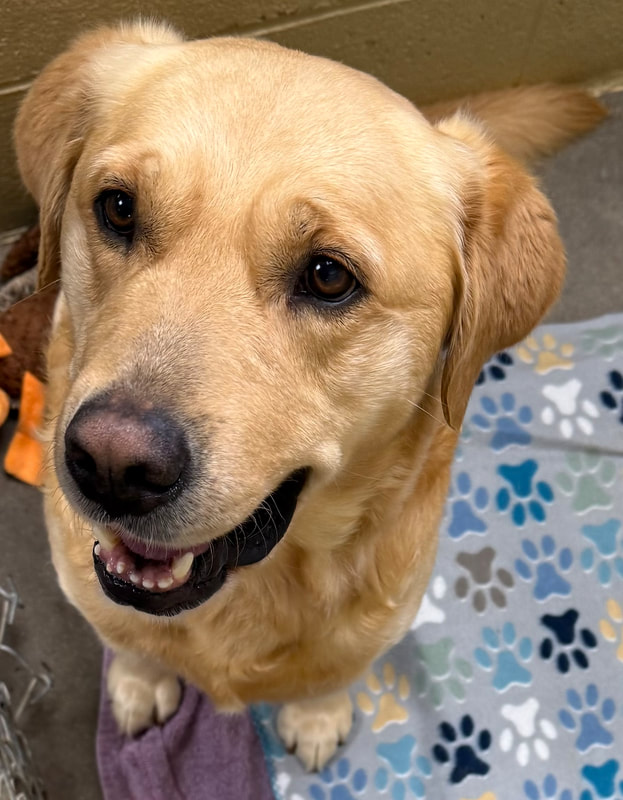 Covey is a beautiful boy who has the kind of face that you could just picture on a box of dog biscuits! But he is more than just a handsome face; he is a wonderful Golden/Lab mix who longs to be the center of someone’s world, with a typical “love me” attitude. His dad told us that Covey is house-trained and sleeps in his crate at night. He is good with other dogs and grew up with 3 children. Dad describes Covey as a "very good boy who loves riding in the car with me."
