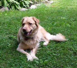 Sweet Amber traveled with her former family from Washington State to Vermont, where they moved into a 3rd floor apartment. Amber was unable to manage the three flights of stairs, so her heartbroken family called Sunshine to help their sweet girl find a home where she can have easy access to a yard. This gentle, 9-year old Golden Retriever mix had been waiting for a quiet home with a fenced yard and few stairs. As Amber's health and mobility declined, her foster mom agreed that it was best for Amber to live out her days right where she was. As we know, getting older isn’t easy, but this girl lives in the moment, always wearing an ear-to-ear smile on her pretty face. She is special, easy to live with, and easy to love. Amber loves people young and old and she loves to lay by her foster mom's feet! Ambie will know nothing but love for the rest of her days and we are forever grateful to her foster mom, Heike!