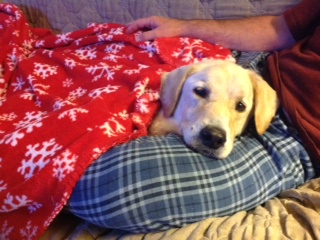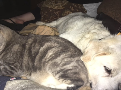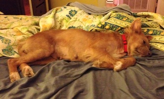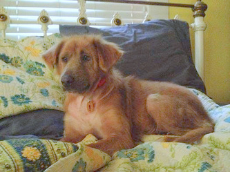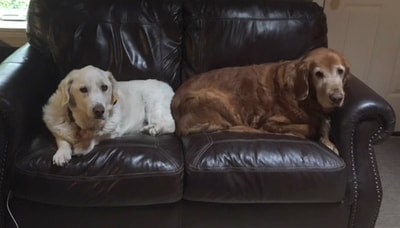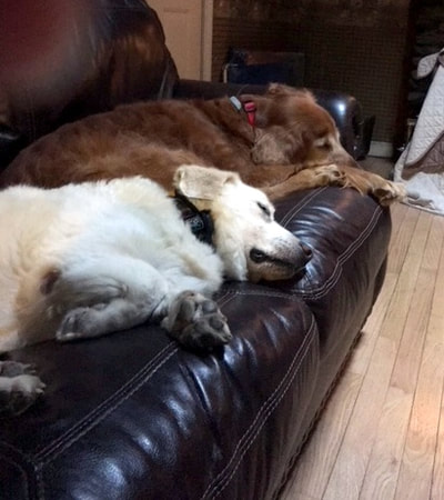 Once he knew he was in his "final" home he began to enjoy life. He would take up a sofa, spread out on his back, all fours in the air, his "junk" showing and drift off into puppy dreams. (This was his favorite position!) At night he trained us to provide him and his canine sister, Mae, with a bedtime snack. And if we were late he would get up on the couch and sit staring in our face until his bedtime snack was provided. If we ignored that process, he would give a single "bark (talking)" and give us the "look" until the treat was provided. It was an incredibly funny and loving thing to experience every night and just so endearing.