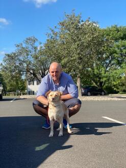 First few days are going great! We spent yesterday in NJ at my mom's and just got back to Boston about an hour ago. We’re taking it easy on the activity but he’s already walking so well on a leash and aside from one minor inside marking at my mom’s, no inside marking. He's settling in nicely and is SO happy every morning when he wakes up, eager to make up for all the snuggles he didn't get while we were sleeping. I think he's happy to just be waking up in the same place after all of his adventures last week. He loves offering us his tush for ample butt scratches and is happy to chill with us much of the day while we are working. He LOVES humans and is still figuring out the other dogs on our walks (there are so many in our neighborhood). We are watching his back left leg (it seems like he's avoiding putting pressure on it and we will ask the vet next week, but he is managing with our stairs) and we are hoping he starts to eat a bit more than he has been. But every day he's getting more and more comfortable. He is such a good boy and is so full of joy. Thank you again! ~ Jordana & Ben