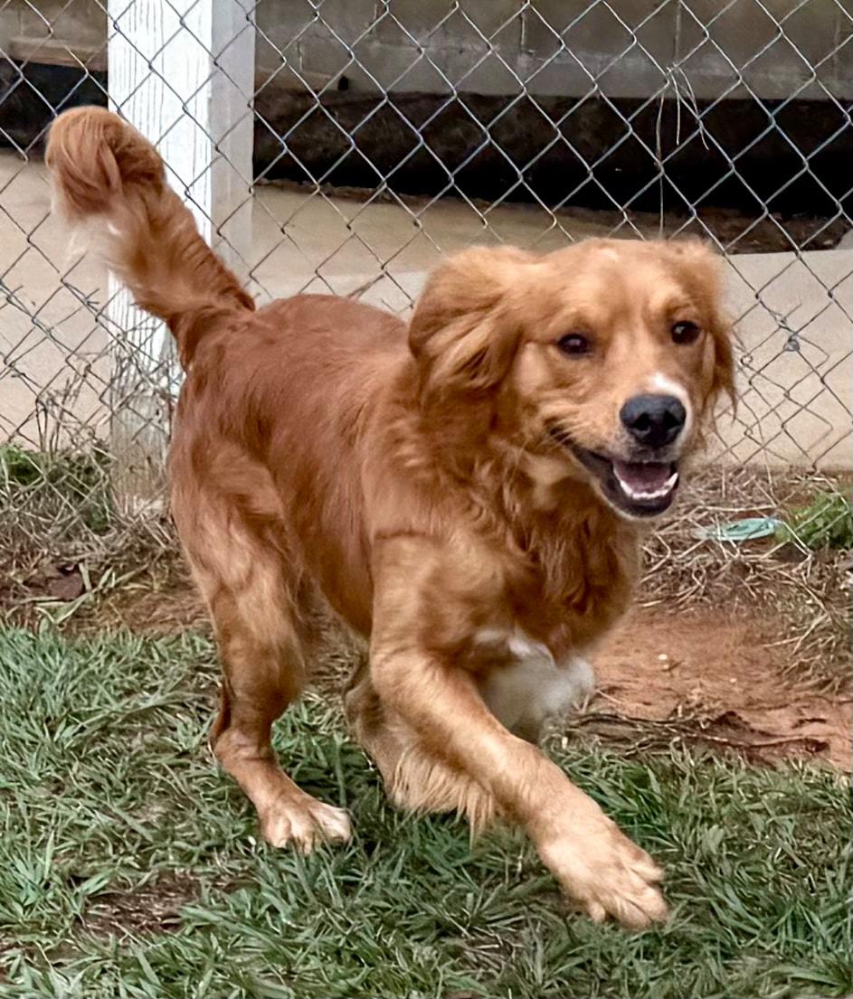Jax is an affectionate Golden mix (maybe with Duck Toller*) who is about 2 years old and is an energetic 45 lb. puppy in his heart. He is so charismatic and is the first dog you will see in a room full of dogs or people - friendly, outgoing, loving. Jax wants to be your new best friend the minute you meet him.