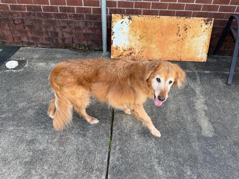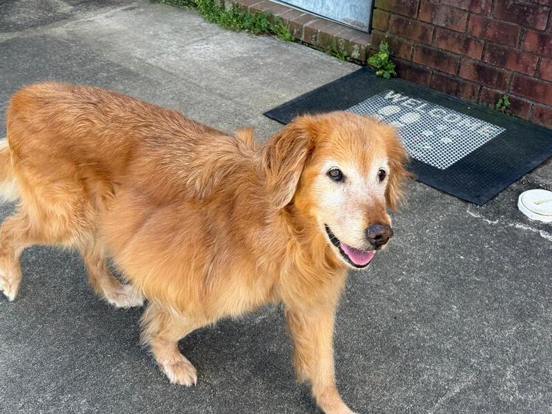 We believe Maggie lived a sad life of neglect, both emotionally and physically, but her gentle and happy Golden spirit shines through, and she is ready to enjoy her happiest years! As with most Goldens, humans are her absolute favorite thing, and she is smiling and happy with the attention she is now receiving every day.