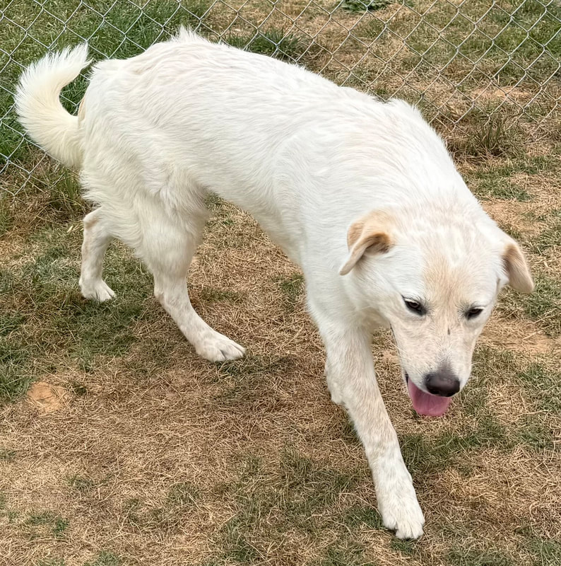 Sugar has a little healing scar that may have happened when she was out on her own, but she shows no nervousness or fear. Everyone she encounters is a new friend, including other dogs. :-) She keeps her kennel clean and while we haven’t heard her bark yet, she brims over with affection. Such a sweetheart! Whoever adopts her will have a tail wagging companion who radiates joy!
